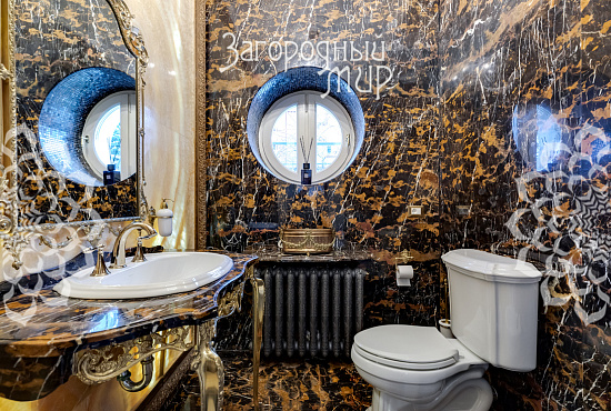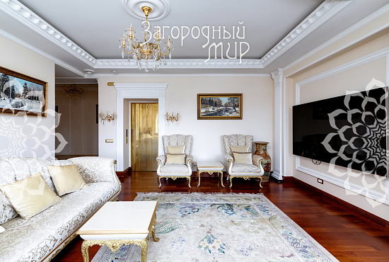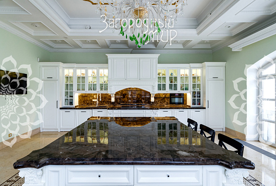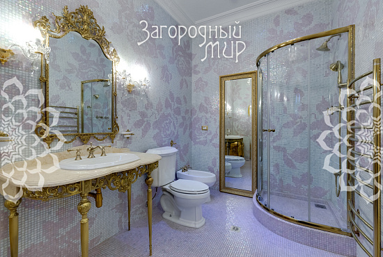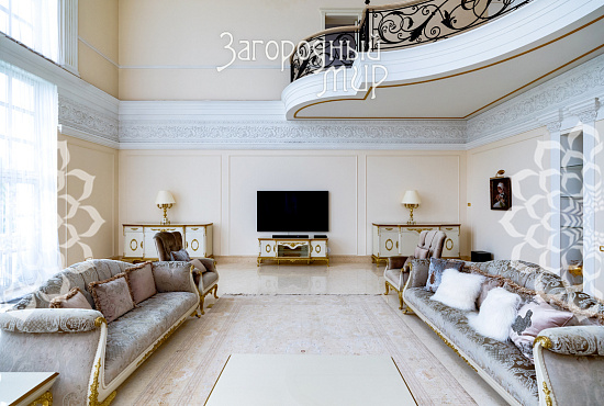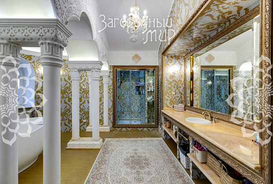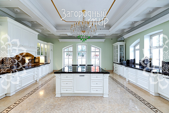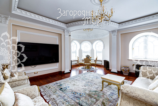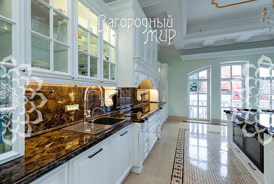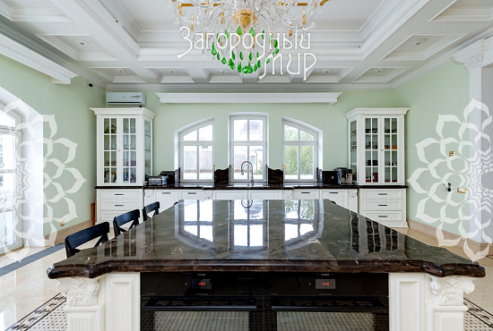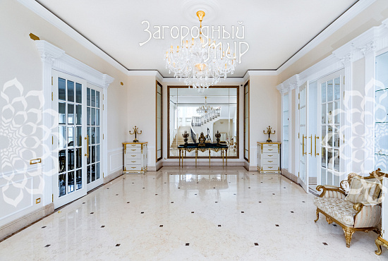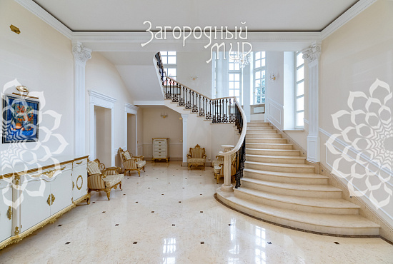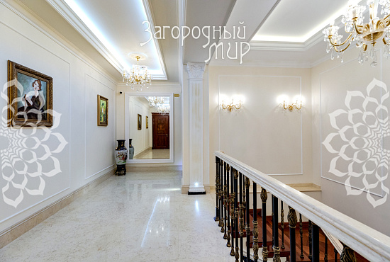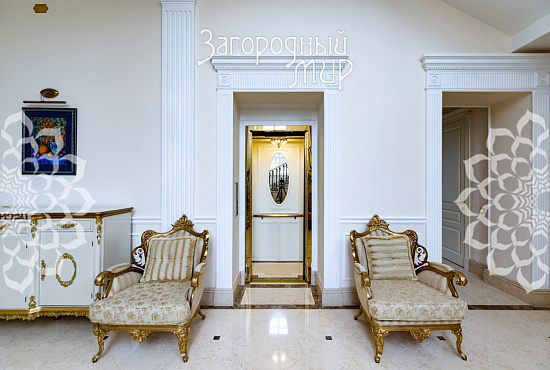 Вешки. Дом в охраняемом коттеджном поселке Вешки-Сити. Кирпичный дом построен по проекту архитектора Борисова Сергея Владимировича, доцента МАРХИ, площадь 1222 кв.м. Фасад отделан гранитом, мраморными балясинами и перилами, мозаикой, изготовленной по эскизам архитектора. Планировка дома. Цокольный этаж: Гараж на два машиноместа, прачечная с вентиляционным оборудованием, гардеробные комнаты гостиная в турецком стиле, баня хамам, баня сауна, винный погреб, санузел, котельная. Жилое помещения для персонала - 2 спальни, кухня, санузел. 1 этаж: холл 100 кв.м, гостиная с камином и вторым светом 100 кв.м, кухня 50 кв.м (грузовой лифт из гаража в кухню), столовая с камином 60 кв.м, библиотека, санузел. 2 этаж: 4 спальни, 2 санузла, холл 46 кв.м, балкон 3 этаж: гостиная 37 кв.м, большая спальня с камином 80 кв.м, 2 санузла, 2 гардеробные комнаты, кабинет 60 кв.м. 1, 2 и 3 этажи соединены лифтом с автоматическими дверями В отделке помещений использовались эксклюзивные материалы изготовленные по индивидуальному заказу. Полы и лестницы покрыты полированным мрамором Sunny, в спальнях наборный паркет Мербау, в санузлах художественная мозаика Бизацца и мрамор, потолки и стены декорированы лепниной по специальному индивидуальному проекту. На втором этаже ограждение – художественная ковка + поручни из мрамора, перила на лестницах - литье из бронзы + поручни из мрамора. Мебель в доме изготовлена на заказ отдельным эскизам турецкого производителя элитной мебели Метебронз. Вентиляция приточная и вытяжная с рекуперацией на шведском оборудовании, встроенная система увлажнения воздуха для периодов зимнего отопления. В спальнях установлены кондиционеры. Установлена система умный дом - управление, освещением, шторами, микроклиматом в доме, въездными воротами, доступом в дом, видеонаблюдение. Участок 30 соток: Гараж 210 кв.м на 4 машиноместа + 2-комнатная квартира для персонала. На участке ландшафтный дизайн, есть спортивная площадка, территория перед домом и гаражом мощенная натуральным камнем. Участок огорожен кирпичным забором (высота 3 м), 2 въезда, ворота автоматические. Коммуникации: электричество 30 кВт, магистральный газ, центральный водопровод, центральная канализация. Поселок Вешки Сити расположен в живописном и экологически чистом районе. Территория поселка благоустроена, есть зеленые зоны и зоны отдыха для жителей. В поселке есть все необходимые удобства для комфортного проживания, включая магазины, рестораны, спортивные клубы. Территория поселка охраняется, что обеспечивает высокий уровень безопасности для жителей. Удобное расположение позволяет легко добраться до центра Москвы.